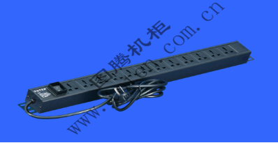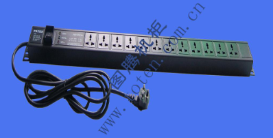 黑色12位国标PDU,10A国标三扁插头输入,10A万用插座输出,带总开关,线长3M,反方向安装
